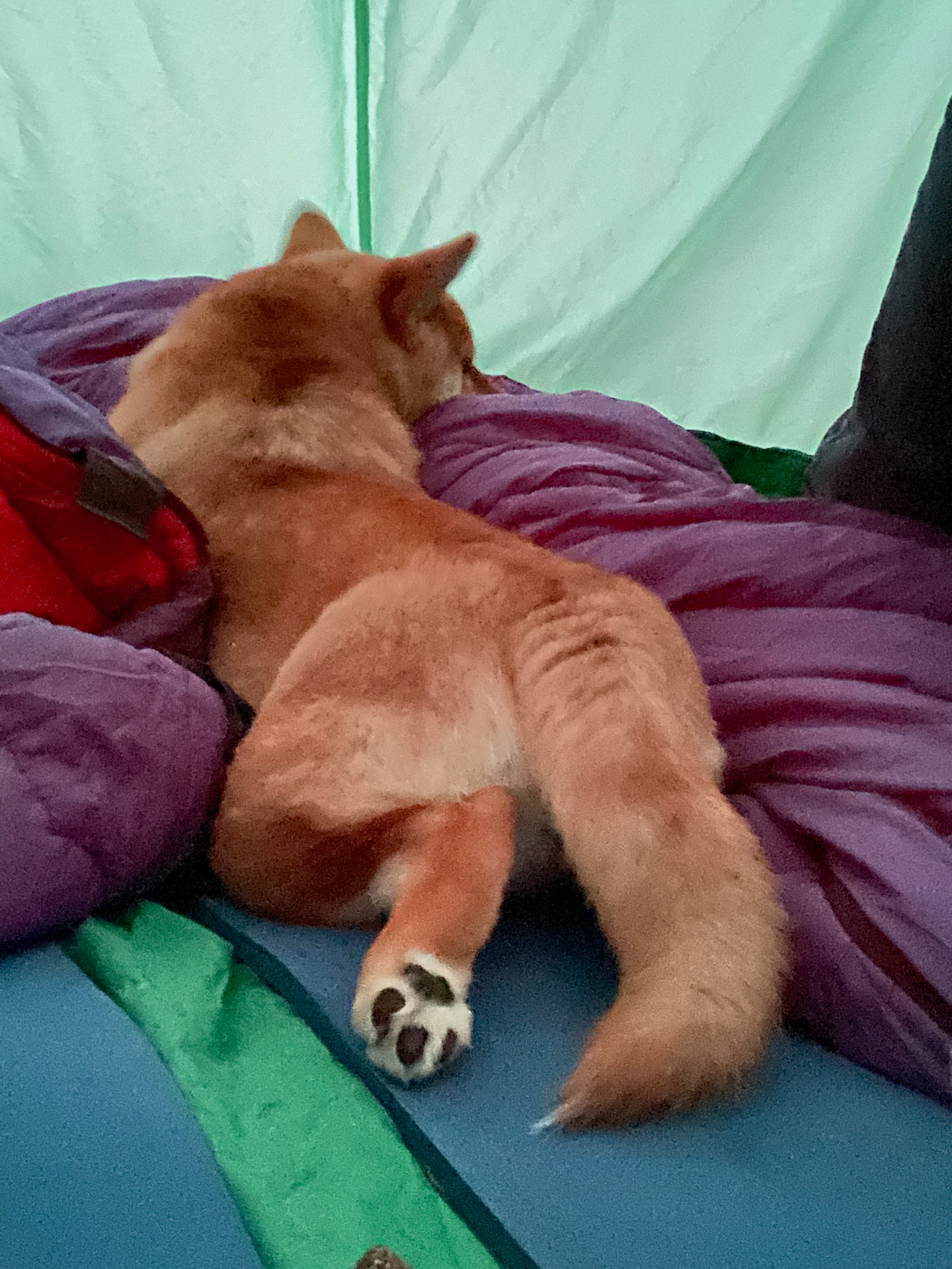 Først overnattingstur med Katsu var allerede når han var 4 måneder. Vi dro ikke så langt hjemmefra og var bare borte en natt. Men vi rakk å fiske litt og oppleve regn og tordenvær på natta. På denne turen skjønte jeg fort at det å gå på tur med Shiba ikke var noe problem. Katsu hadde ikke noe problem...